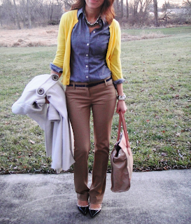 but my chambray top is kind of on the bulky side and I felt really uncomfortable with the sweater over top. Also, my classroom was on the warm side, so it worked much better without.